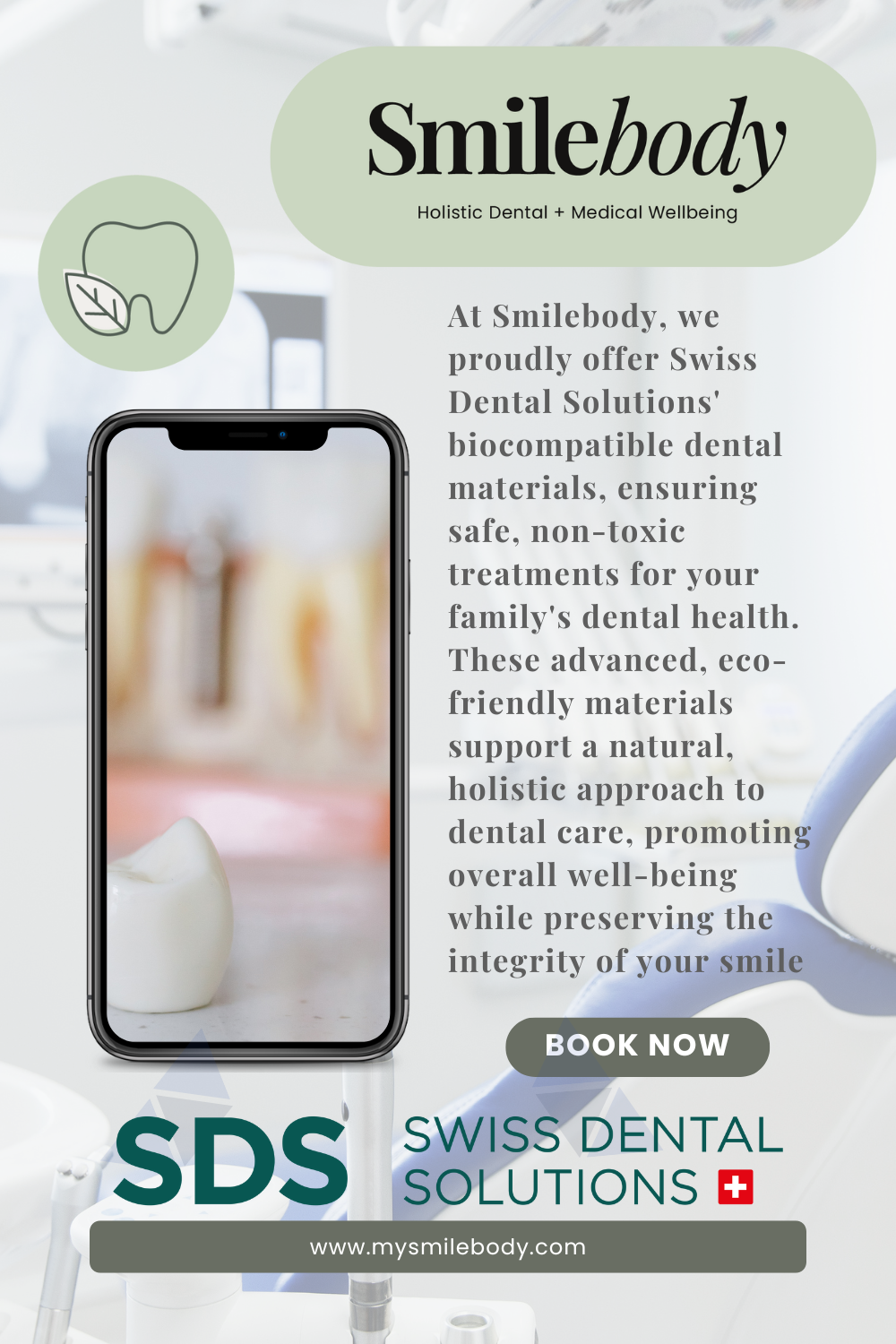 Swiss Dental Solutions is leading the way in providing safe, effective, and biocompatible dental materials that benefit both patients and biological dental professionals like us at Smilebody. Whether you’re undergoing restorative procedures or need a new dental implant, choosing biocompatible options ensures your dental care supports not just your smile, but your overall health. To learn more about their innovative products, schedule your appointment with Smilebody here today!